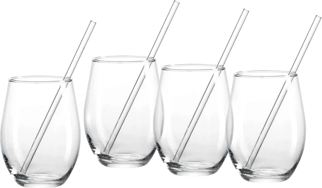 Gin / -Trinkhalm-Set 8-teilig – Glasklare Vorzüge: Die formschönen Longdrinkgläser bieten ein respektables Fassungsvermögen und freie Sicht auf das enthaltene Getränk, die Trinkhalme eignen sich zum Umrühren und unfallfreien Trinken. Das Partyset gin bringt nicht nur Gin Tonic mit Gurke oder Zitrone gebührend zur Geltung, sondern eignet sich auch für (fast) alle anderen Getränkekreationen, die mit dekorativen Zutaten ins Auge fallen, wie z.B. Cocktails mit Früchten, Eistee mit Rosmarinzweigen oder Limonade mit Lavendelblüten. Inhalt: 4 Longdrinkgläser 590 ml, H 13 cm, 4 Trinkhalme L 20 cm. Lieferumfang: 4 Longdrinkgläser á 590 ml, 4 Trinkhalme H 20 cm Eigenschaften: mit 3D-Dekor, aus brillantem Kristallglas, Trinkhalm aus stabilem, bißfestem Borosilikatglas, spülmaschinenfest
