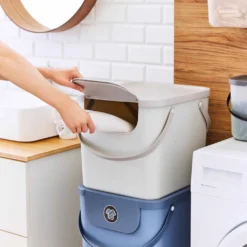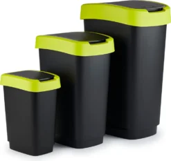 Dieser Abfalleimer ist eine Bereicherung für jede Küche. Durch die Kombination von Mülleimern in verschiedenen Farben und der mitgelieferten Sticker eignen sich diese auch hervorragend als Recycling Center. Der hochwertige Kunststoff hat den Vorteil, dass keine Kratzer, Beulen oder Fingerabdrücke entstehen. Sowohl Müllbehälter als auch Deckel lassen sich einfach reinigen. Eine Erleichterung für die Küche Der Abfalleimer lässt sich bequem über die Schwing-Funktion oder über die herkömmliche Klappfunktion öffnen. Die schmale, eckige Form des Müllbehälters ermöglicht ein platzsparendes Müllsammeln.