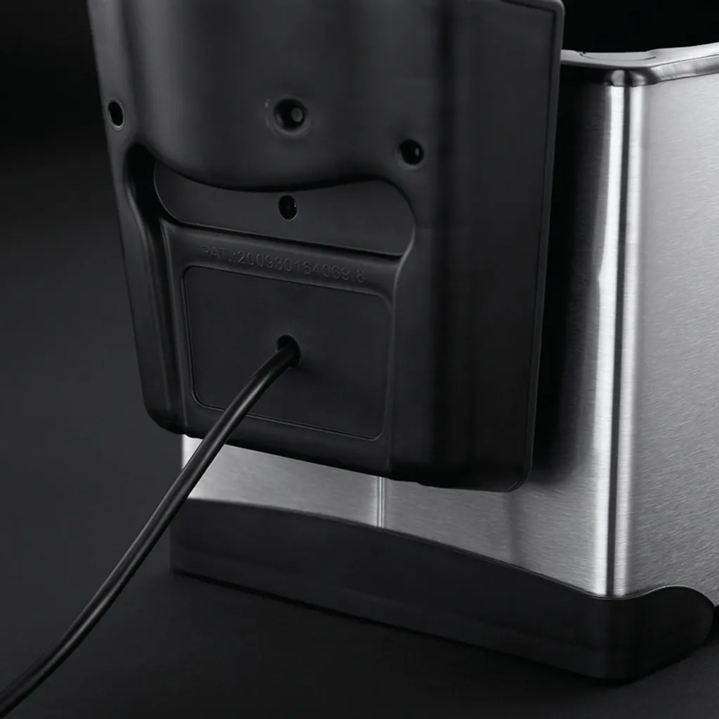 - Gehäuse aus gebürsteten Edelstahl für eine einfache Reinigung, Deckel mit Sichtfenster und Filter um die Gerüche zu reduzieren