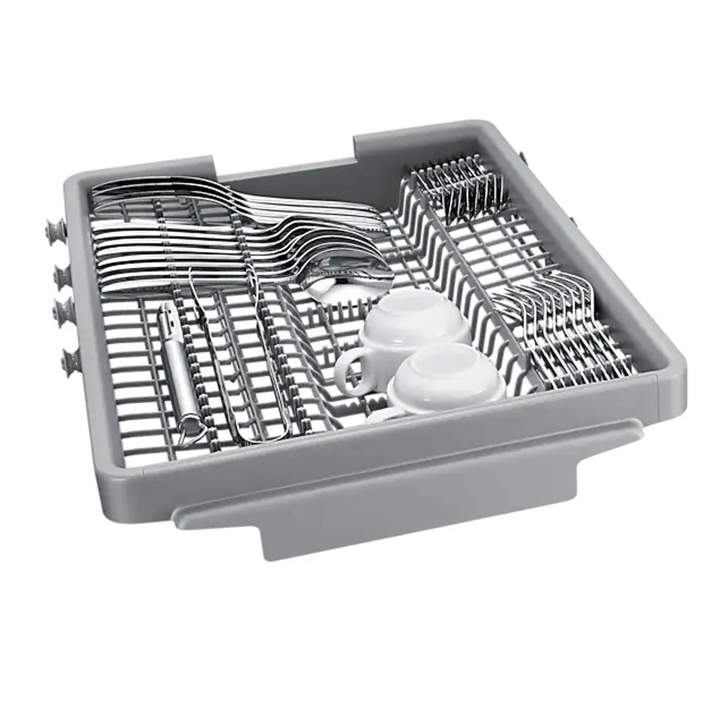 Samsung Einbau Geschirrspüler (vollintegriert), Besteckschublade, 45 cm DW50R4070BB/EO Automatische Türöffnung Lautstärke: 44 dB(A) Hygiene-Funktion Für ein ruhiges Zuhause Geräuscharme Reinigung Genieße eine leise Reinigung: Der aus Edelstahl gefertigte Boden des Geschirrspülers kann Geräusche und Vibrationen für einen leisen Spülgang absorbieren. Automatische Türöffnung für schnelles Trocknen Automatische Türöffnung Erhalte sauberes und glänzendes Geschirr dank der automatischen Türöffnung. Wenn der Spülgang beendet ist, öffnet sich die Tür automatisch um 10 cm, damit der Dampf abziehen kann. Besonders gute Ergebnisse können so bei spülmaschinenfestem Kunststoffgeschirr und kleinem Geschirr erzielt werden. Automatische Auswahl des Spülgangs Automatische Schmutzerkennung Freue dich nach dem Spülgang über eine effiziente Reinigung: Die automatische Schmutzerkennung kann erkennen, wie schmutzig das Geschirr ist und daraufhin einen entsprechenden Spülgang auswählen. So können…