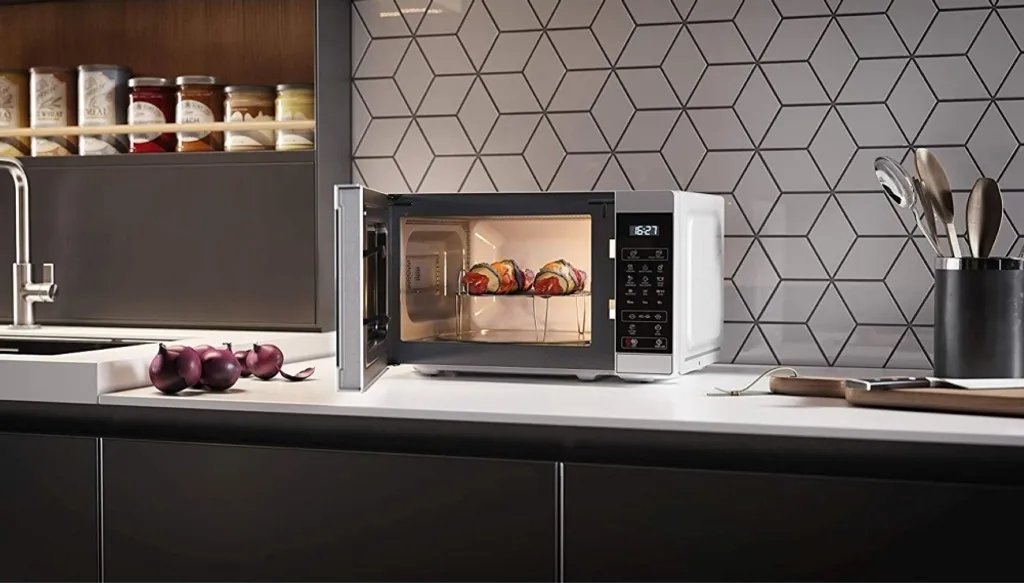 800 Watt Mikrowellenleistung: Erhitzen Sie Nudeln, Kartoffeln, Suppen, Eintöpfe und Fertiggerichte besonders schnell oder nutzen Sie die 1.000 Watt Grillfunktion und bereiten einfach und schnell knusprig, goldbraun gegrilltes Geflügel, Gemüse oder Fisch zu.