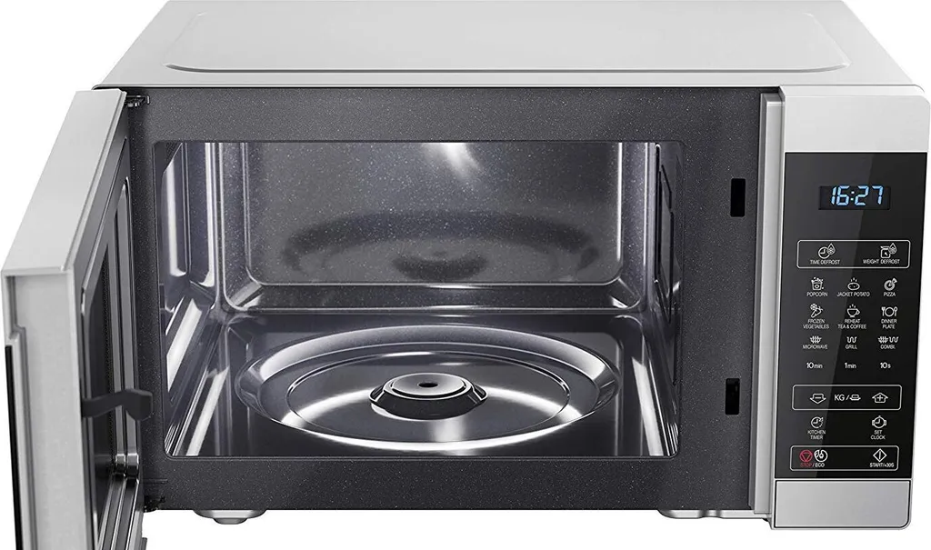 Der Sharp YC-MG02E-S ist mit allem ausgestattet, was ein moderner Mikrowellenherd haben sollte. Neben der Mikrofunktion verfügt es auch über eine Grillfunktion. Rotierende Scheibe, 11 Leistungsmodi, 8 voreingestellte Programme und Abtaumodus mit Gewichtseinstellung. Es ist auch mit einer Timer-Funktion und einer Kindersicherung ausgestattet. Sharp YC-MG02E-S hat auch einen Knopf für Popcorn.
