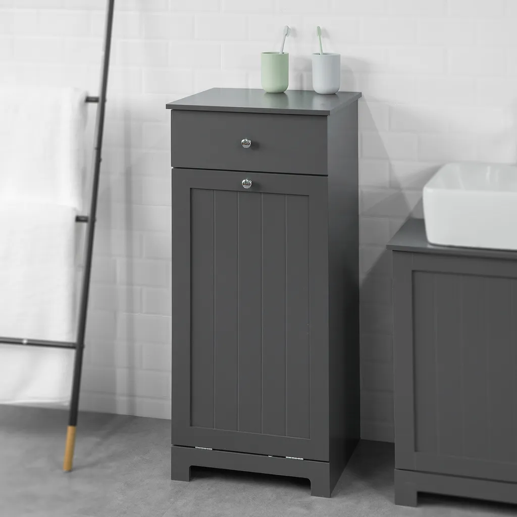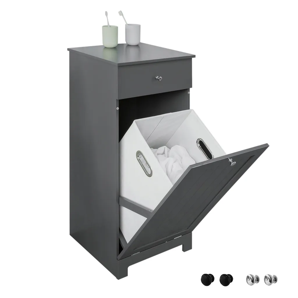 Dieser Wäschesammler sorgt für zusätzlichen Stauraum und verschönert Ihr Bad gleichzeitig. Accessoires für den täglichen Bedarf und Schmutzwäsche finden im Wäschesack hinter der Klapptür Platz und sind damit stets griffbereit.