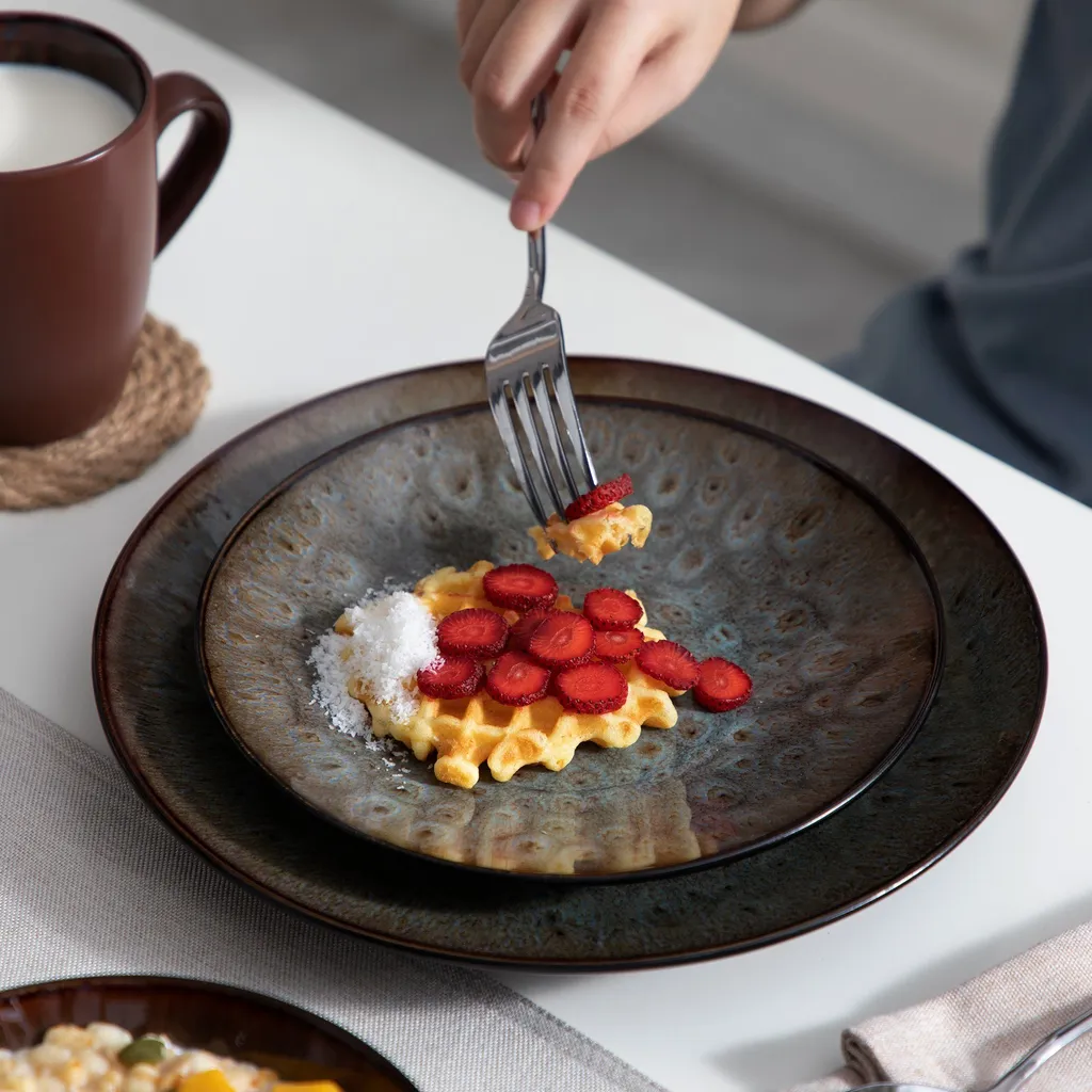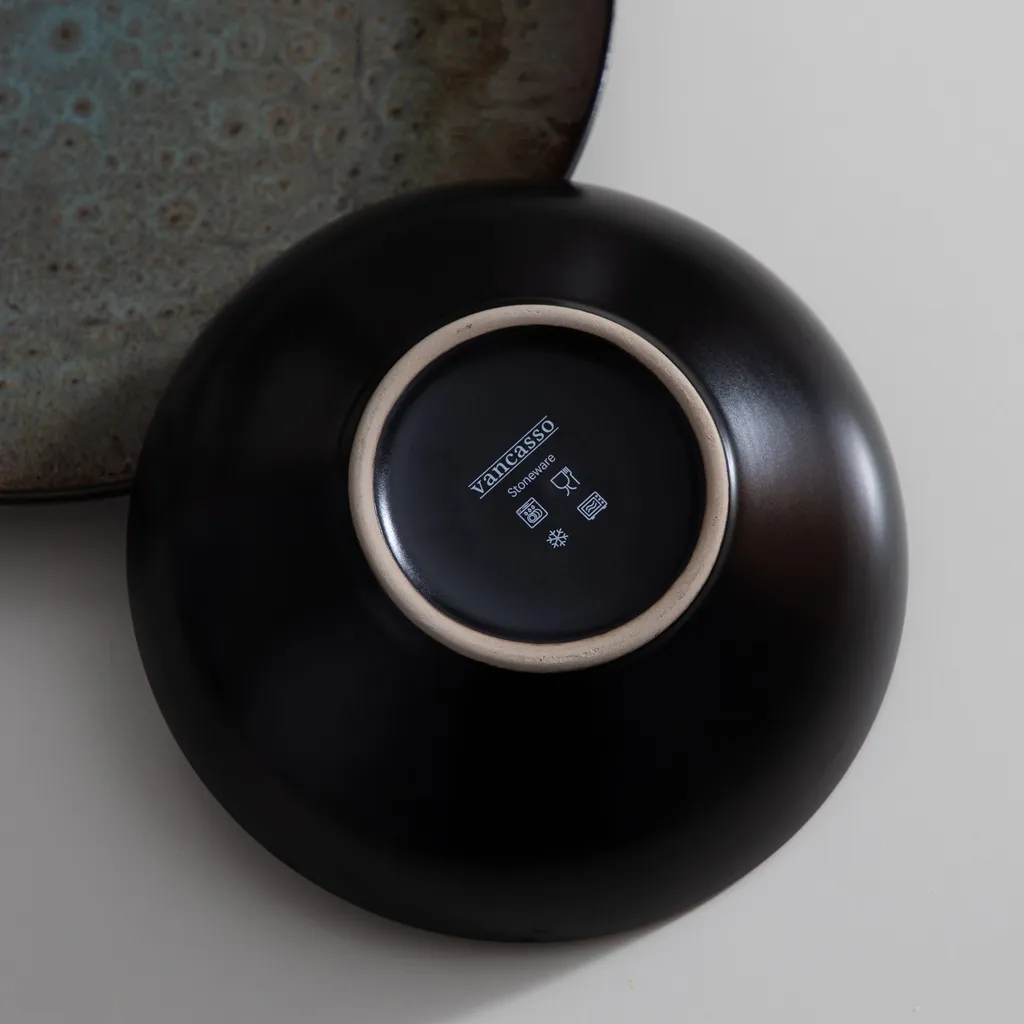 - Außerordentliches Design. Aus umweltfreundlichem Steinzeug ist das vancasso Ess Geschirrset von Hand gefertigt. Glatte und exquisite Glasur Oberfläche, matte Rückseite, handbemaltes Design und elegantes Vintage Aussehen entsteht eine einzigartige angenehme Harmonie.