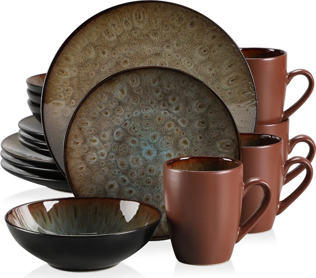 - Komplette Kollektionen. 16-teiliges Essgeschirr Service Set besteht aus 4 Speisetellern Ø27,3 cm, 4 Desserttellern Ø21,3 cm, 4 Kaffeetassen, 380ml und 4 Müslischalen 600ml, Ø17,8 cm; Dank der speziellen Glasur kollidiert die Farben im Rahmen der Handwerkskunst bis zum Äußersten. Perfekt verleiht Ihre Tafel nicht nur einen absoluten Hingucker sondern auch absolut eine stilvollen Eleganz.