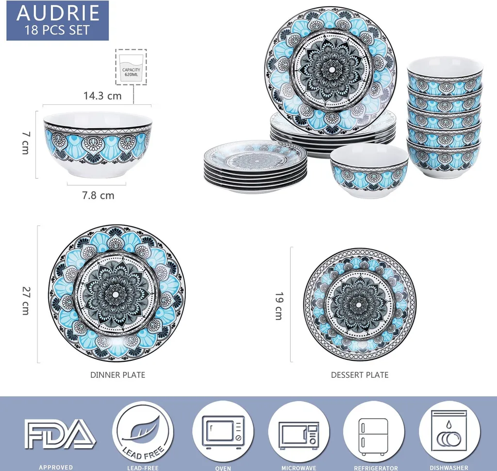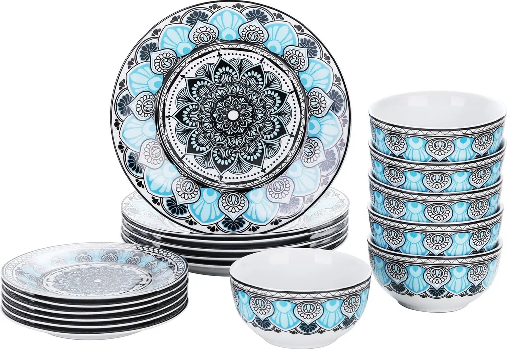 - [SCHÖNES GESCHIRRSET AUS PORZELLAN] – Handgefertige Porzellanprodukte mit sehr schöner hochwertiger Optik, beinhaltet 6 Dessertteller ( 19 x 19 cm ), 6 Speiseteller ( 27 x 27 cm ), 6 Schüsseln ( 14 x 14 x H7 cm ). Die sehr gute Porzellan Qualität ermöglicht einen langjährigen Einsatz im täglichen Gebrauch.