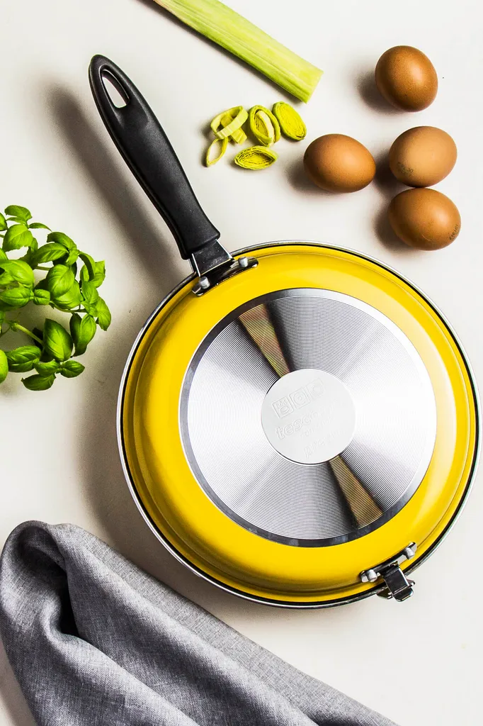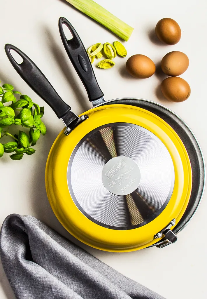 Die stilvollen und multifunktionalen Doppelpfanne „Presto“ von Tescoma eignet sich hervorragend zum leichten und schnellen Braten und Schmoren von Lebensmitteln. Hervorragend für die Zubereitung von hohen Omeletten wie Tortillas, Frittatas u.ä., gefüllten Teigtaschen, Gemüse- sowie Reisgerichten usw.