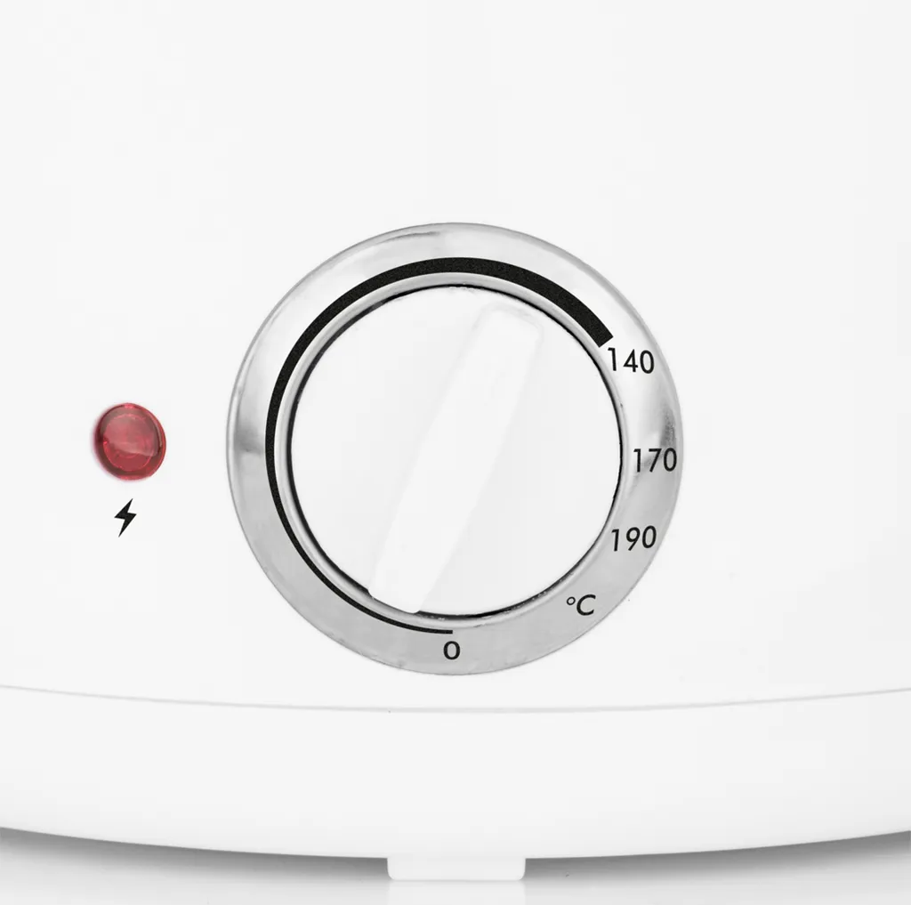Die Tristar-Fritteuse lässt sich mit dem einstellbaren Thermostat ganz einfach bedienen. Die Temperatur kann mit einem Drehregler auf 130⁰C bis 190°C eingestellt werden, wobei eine Kontrolllampe anzeigt, ob das Gerät eingeschaltet ist. Dank 1000 W Leistung erreicht der Fritteuse rasch die richtige Temperatur.