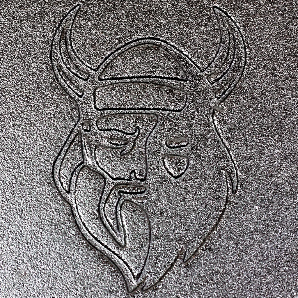 Die Pfanne hat ein solides Design, ist aber aufgrund des Valhal Outdoor Viking-Kopfes am Boden der Pfanne immer noch cool.