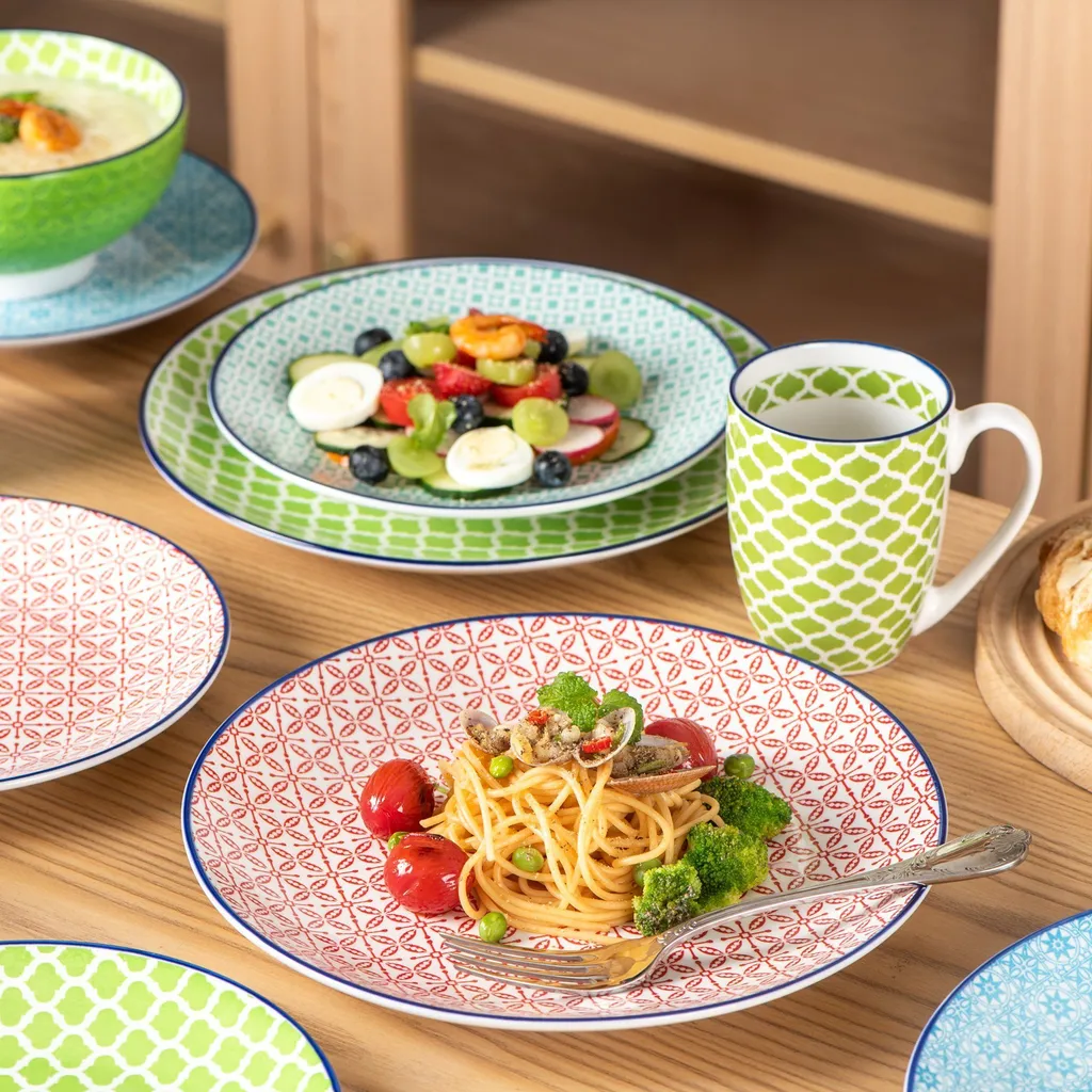 - Ausgezeichnetes Design und professioneller Hersteller. Klassische Form mit eleganten, grafischen Dekoration in einer modernen Zusammenstellung, stylishes Muster- / Farbmix, vollflächig dekoriert, ist das Set richtig schick und verleiht der Tafel stilvollen Eleganz, ideal für jede Gelegenheit und jeden Tag. Eine außergewöhnliche gute Option für Sie!