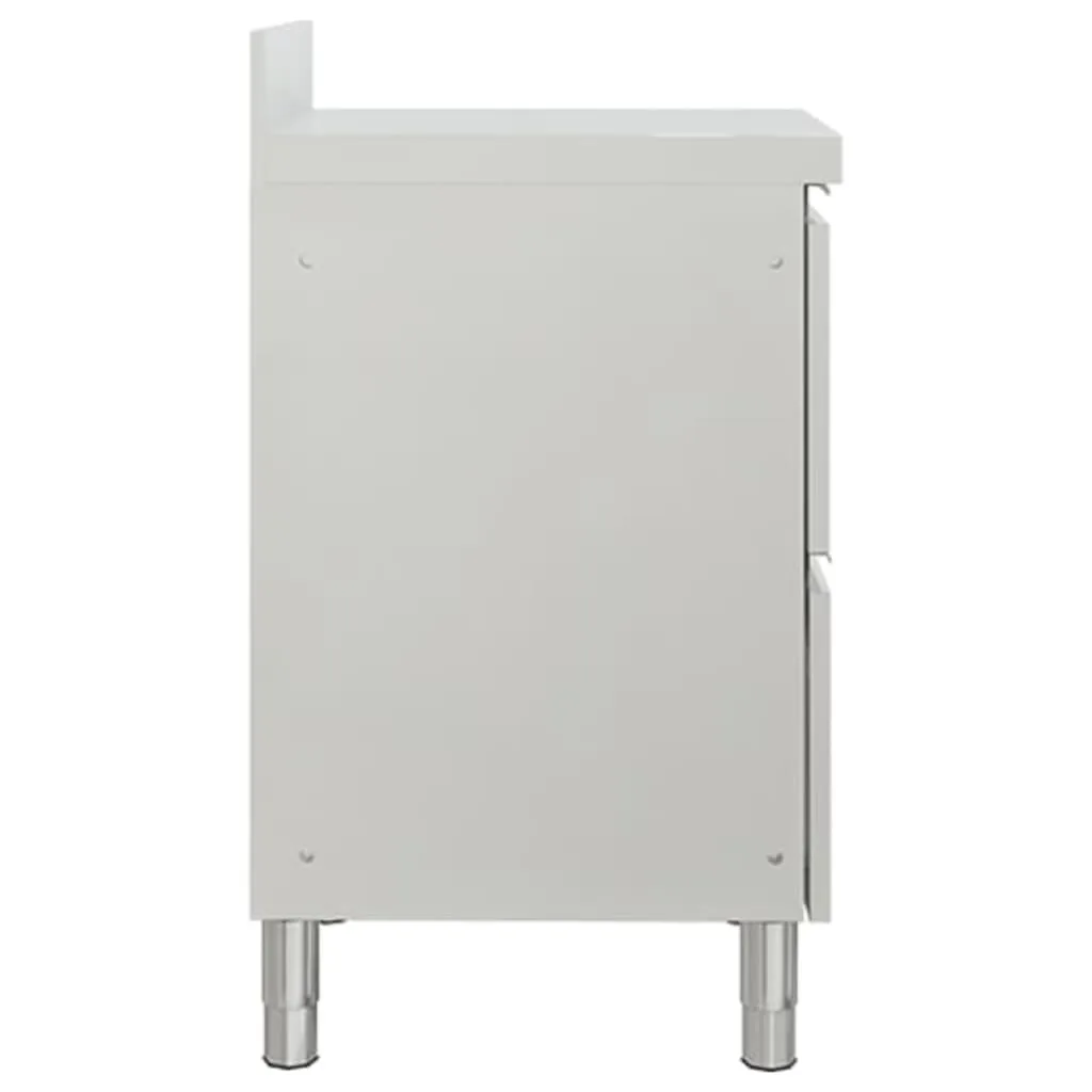 Wenn Sie zusätzlichen Stauraum für Küchenutensilien benötigen, ist dieser Gastro-Küchenschrank die perfekte Wahl für Sie. Er lässt sich in Restaurants, Hotels, in der Lebensmittelproduktion, in der Gastronomie oder in Garagen, am Arbeitsplatz und zu Hause einsetzen. Aus hochwertigem Edelstahl gefertigt, ist dieser Schrank robust, korrosionsbeständig und leicht zu reinigen. Zwei Schubladen bietet reichlich Stauraum für Reinigungsgeräte und Zubehör. Die verstellbaren Füße halten den Schrank selbst auf unebenen Böden gerade. Es ist auch mit einer 10 cm hohen Aufkantung sowie Wasserloch versehen. Sie können miteinander verbunden werden, um Ihren spezifischen Anforderungen gerecht zu werden. Montagezubehör ist im Lieferumfang enthalten.