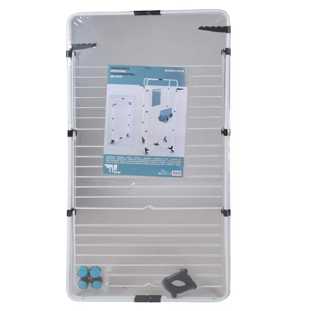 Dank des leichten zusammenklappbaren Designs kann der Wäscheständer problemlos in den Innenbereich getragen werden es fängt plötzlich an zu regnen. Die Beschichtung macht das Gestell zudem witterungsbeständig.