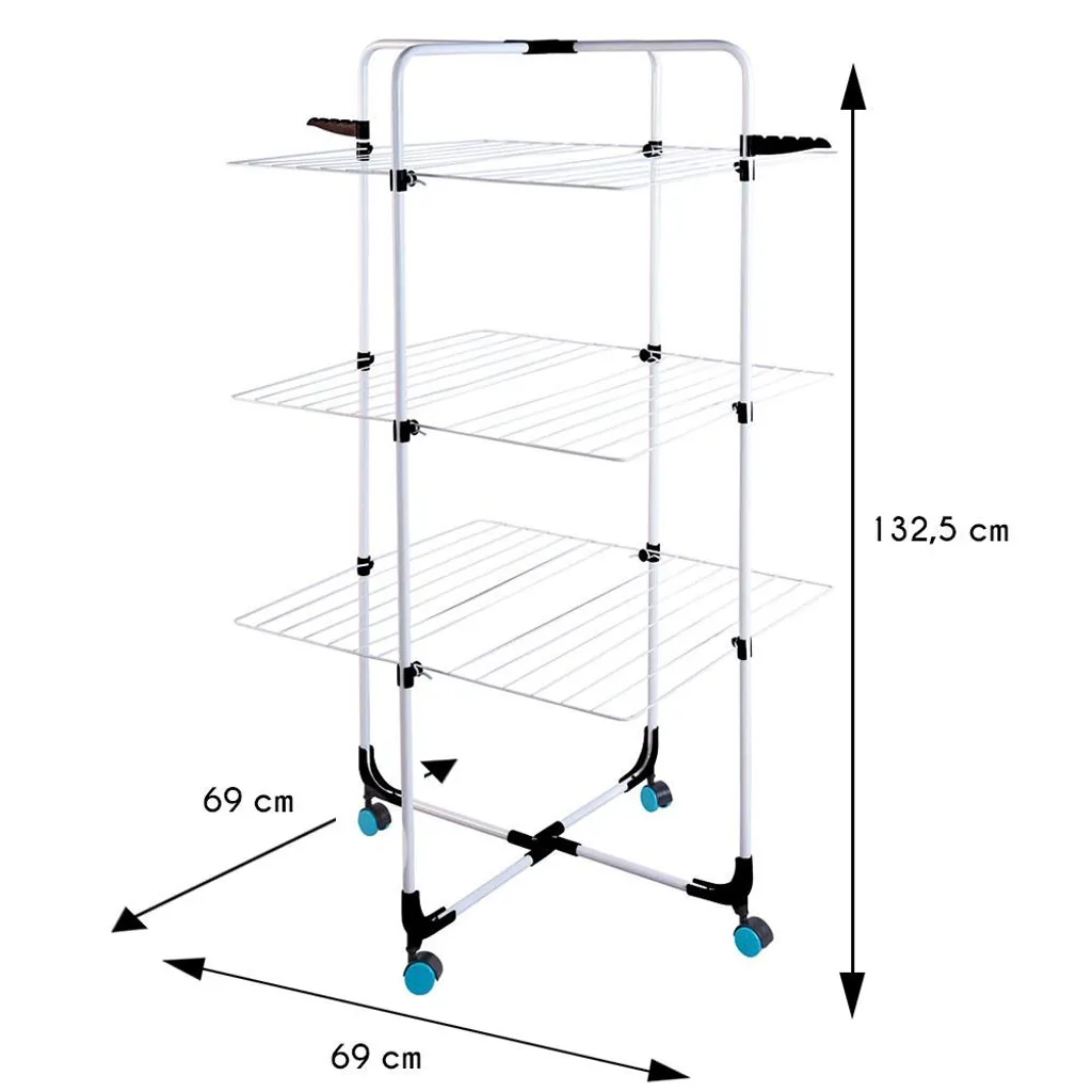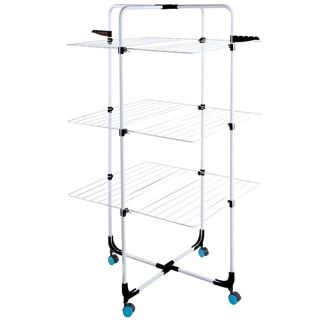 - Er verfügt über drei Ebenen zum Trocknen von Kleidung und Wäsche sowie über zwei zusätzliche Kleiderhaken.
