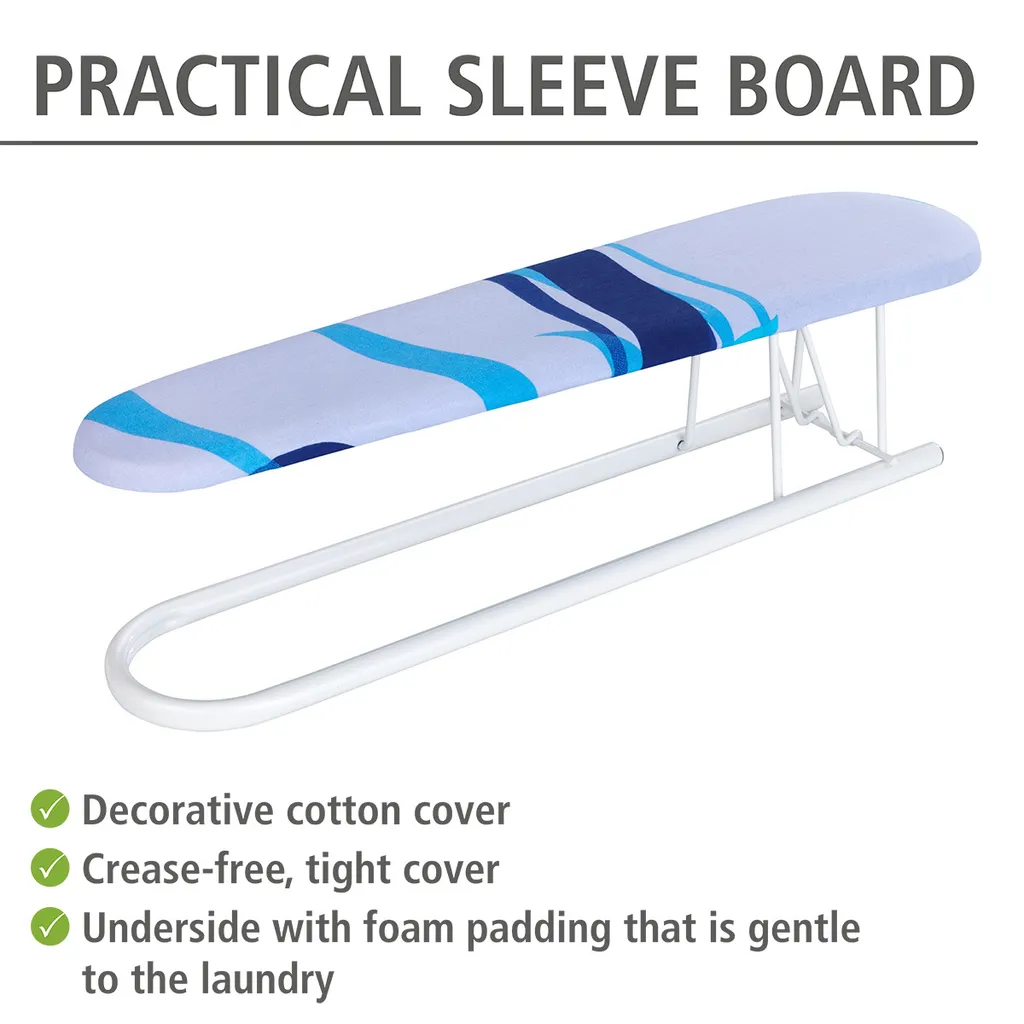 WENKO Ärmelbügelbrett, zusätzliches Bügelbrett mitNachbildungbezug für Hemden & Hosenbeine, knitterfreier Bezug für komfortables Bügeln aus 100 % Baumwolle, praktische Bügelhilfe, 52 x 12 cm, Blau