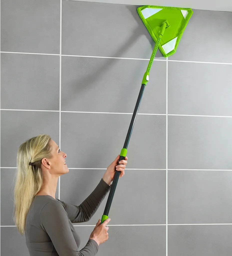 Haben Sie auch immer Probleme beim Putzen und Wischen in die Ecken zu kommen? Mit dem Wischmop Triangel ist das nun vorbei. Der Mopp verfügt über einen ausziehbaren und biegsamen Verlängerungshals und kann so auch hervorragend genutzt werden, um schwer zugängliche Bereiche hinter Schränken oder unter Regalen zu reinigen.